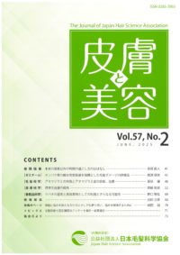 ![]() | 巻頭随筆 定年退職を迎えて 帝京大学医学部皮膚科名誉教授、帝京大学医真菌研究センター特任教授、当協会副理事長 渡辺 晋一 ゼミナール "外相整えば内相自ずから熟す ―良い姿勢、箸・鉛筆の持ち方―" 川村学園女子大学 生活創造学部 坂口 早苗、他 毛髪科学 "髪の毛がない女性たちの「生きづらさ」 ―脱毛症当事者の問題経験の語りから―" 聖心女子大学 吉村 さやか 皮膚科学 "植毛の歴史~奥田庄二先生の足跡と業績をめぐって~:Japan as No.1" 心斎橋いぬい皮フ科院長、大阪大学医学部皮膚科学招へい教授 乾 重樹 香粧品科学 紫外線照射による毛髪ダメージ評価 株式会社ミルボン 渡邉 紘介、他 用語解説 サロンワークに関係する化学用語解説(その6 ) 日本パーマネントウェーブ液工業組合 井上 潔 |